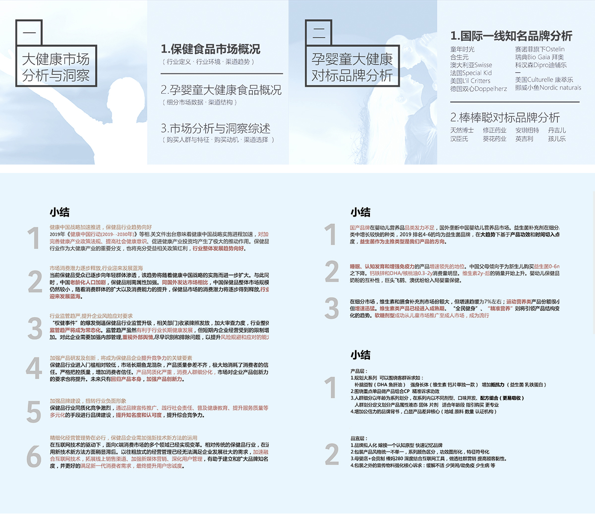 保健食品市場(chǎng)受到健康中國戰(zhàn)略的推動(dòng)而呈現(xiàn)積極發(fā)展趨勢(shì)。保健品行業(yè)需要加強(qiáng)產(chǎn)品研發(fā)和創(chuàng)新,加強(qiáng)品牌建設(shè),精細(xì)化經(jīng)營(yíng)管理,并借助互聯(lián)網(wǎng)技術(shù)提升競(jìng)爭(zhēng)力。在孕嬰童大健康食品領(lǐng)域,益生菌補(bǔ)充劑和睡眠、認(rèn)知發(fā)育、免疫力增強(qiáng)產(chǎn)品具有潛力。市場(chǎng)分析表明直銷占比增加,醫(yī)藥零售下降,線上銷售快速增長(zhǎng),媽媽群體成為重要消費(fèi)者群體,線上母嬰社區(qū)是關(guān)鍵的決策渠道。品牌應(yīng)加強(qiáng)在線上渠道的宣傳推廣和互動(dòng)交流。